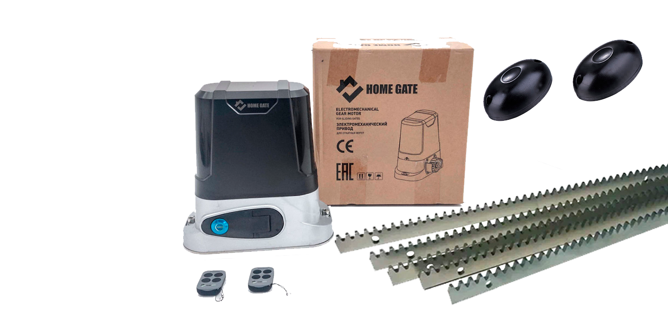 Электропривод для откатных ворот HOME GATE LTM 800 + рейка 5 шт + фотоэлементы + лампа